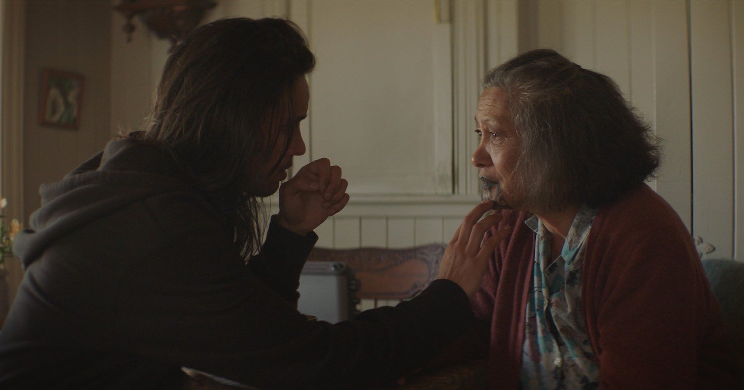The film’s matriarch, played by Kararaina Rangihau, was an important character for Awarau’s piece. Despite her family’s protestations, the Kuia is unwilling to give up on her moko — something he feels his late mother would’ve also done.