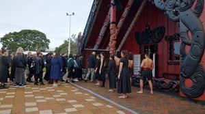 Earlier in the week when the production arrived the cast and crew were welcomed onto Orakei Marae with a traditional pōwhiri, and for some it was an emotional homecoming.