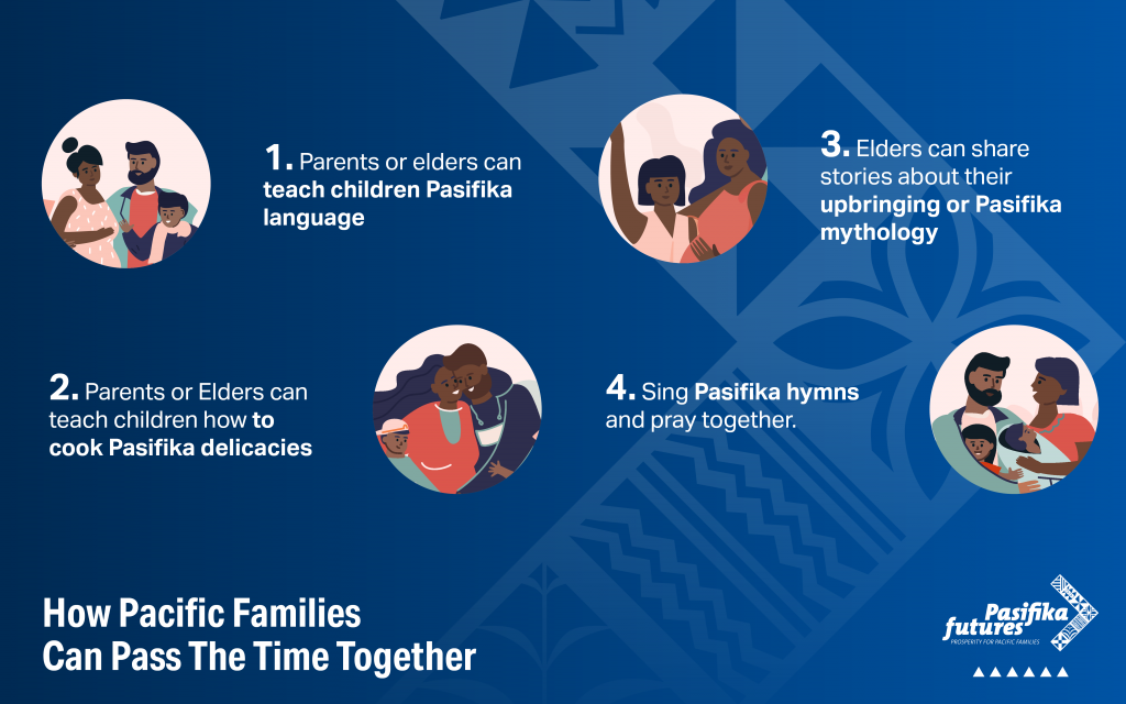 “This can be the time to learn new things like teaching children Pasifika language or how to bake some Pasifika delicacies such as topai (Tongan) or koko Samoa. Grandparents can tell stories of their upbringing or Pasifika mythology and using spirituality and family prayers to guide us.”