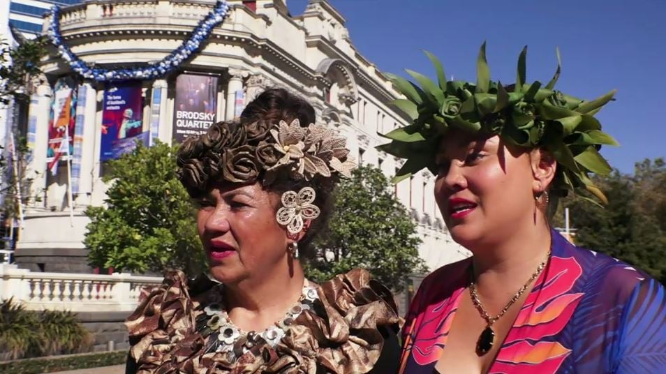West Auckland’s Pacific Mamas presented Tāmaki Makaurau with the ultimate gift of love this week – a large ei, or floral garland, installed on the Auckland Town Hall.