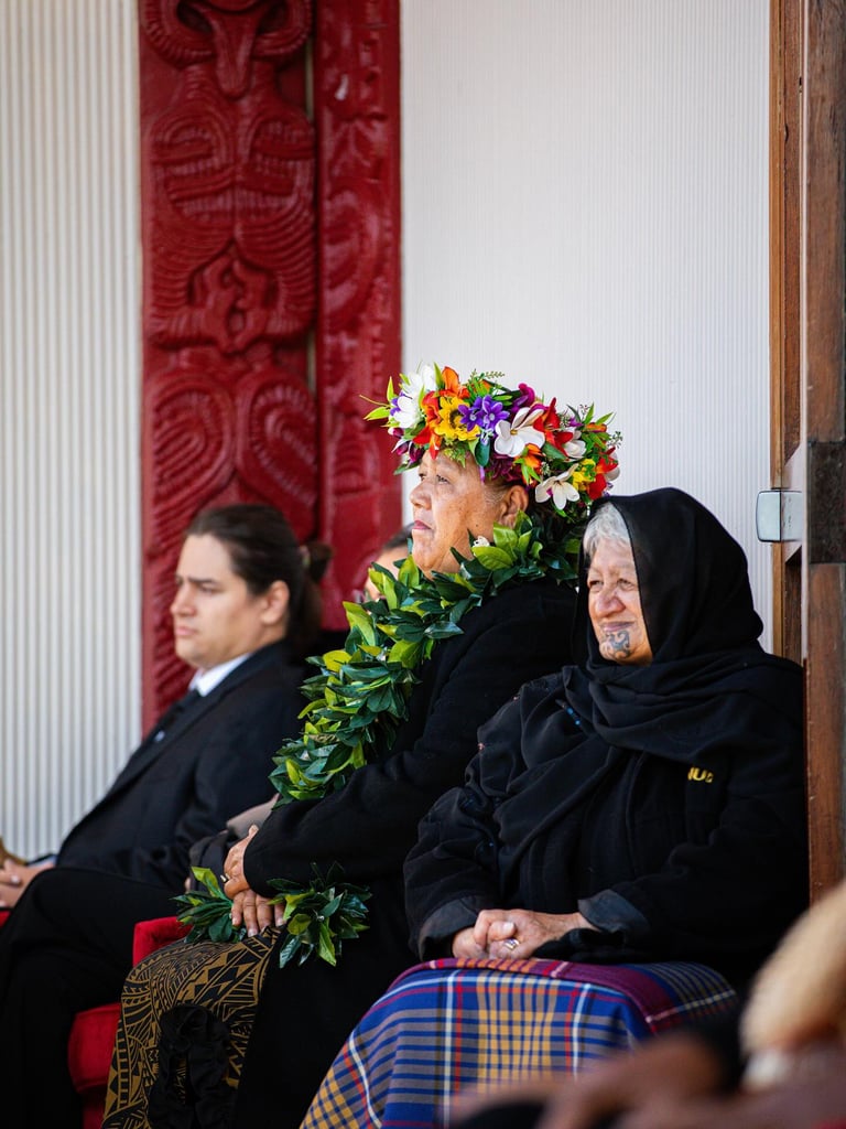 Representatives from the Royal houses from the Kingdom of Tonga, Cook Islands, Tahiti, Hawaii and Fiji alongside members of the wider Pasifika community of Aotearoa New Zealand were greeted onto Turangawaewae Marae in Ngaruawahia.