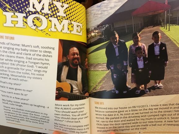 The young writers teamed up with award-winning writer and teacher David Riley to write the book. It’s a project that 12-year-old Meleane Tafuna was proud to feature her family in. She writes, “Sounds of home. Mum’s soft soothing voice singing my baby sister to sleep, then the clink and clank of the dishes as she cleans them.”