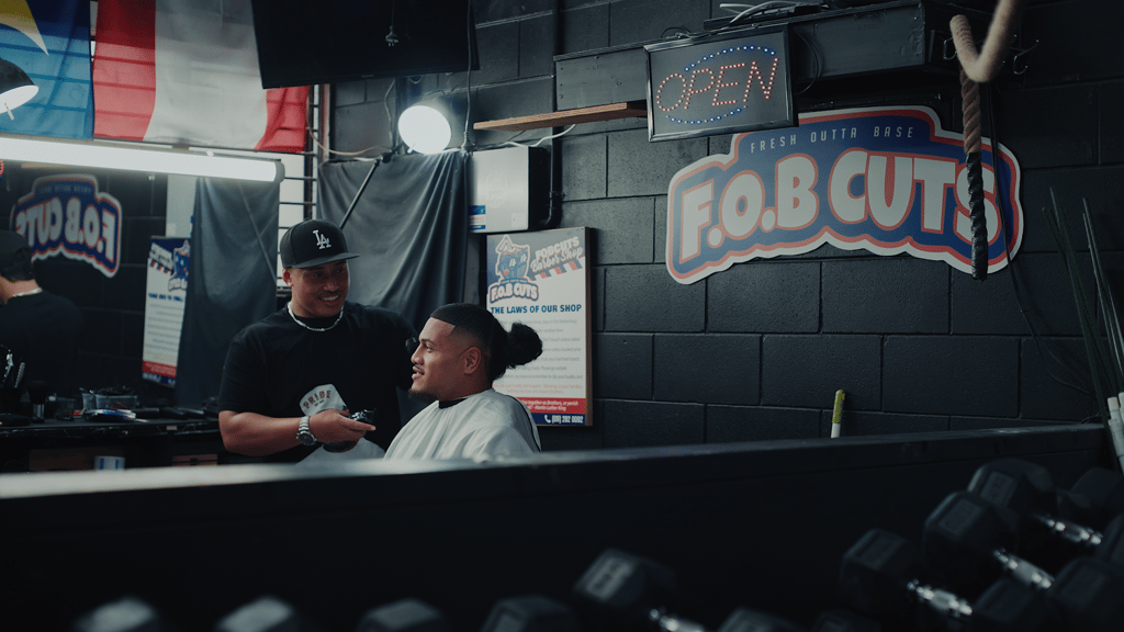 Johnnie and his crew have taken ownership of derogatory terms and made them their own. The barbershop is called F.O.B. Cuts. F.O.B. means Fresh Out Of Base.